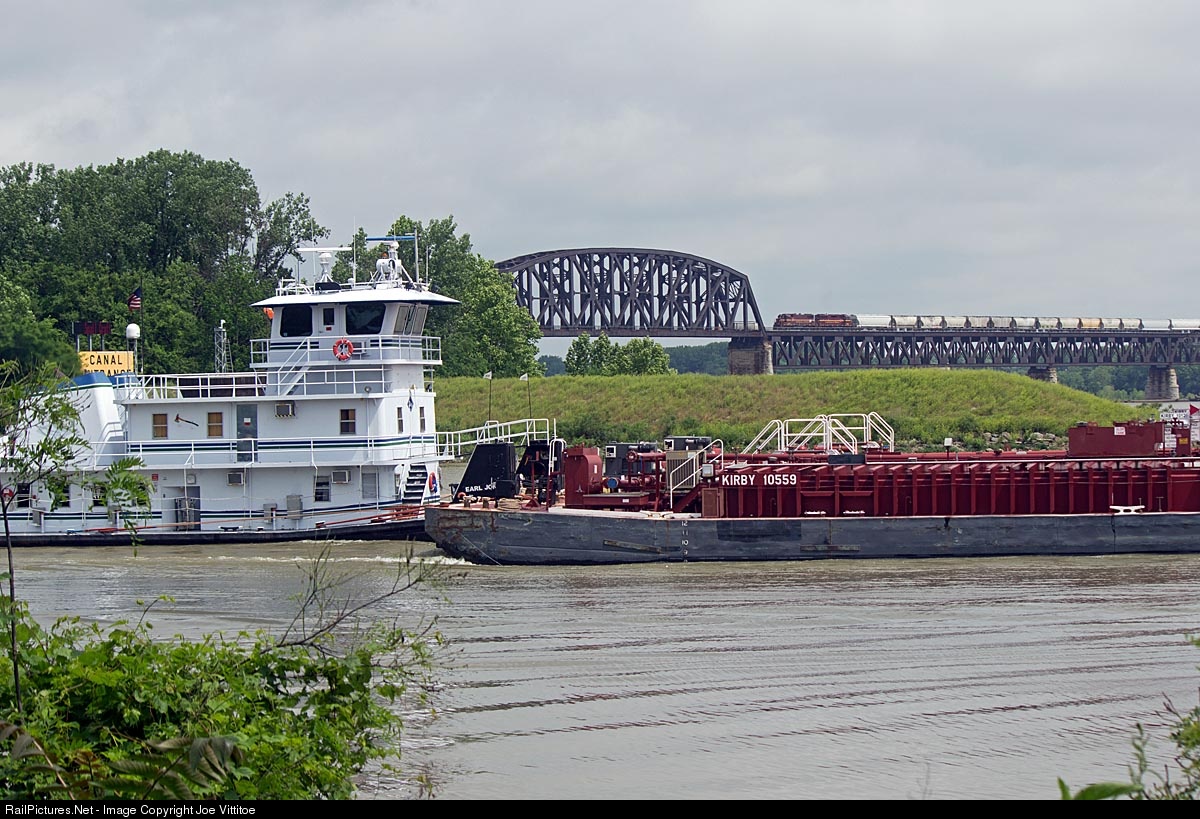Having just cleared the lift bridge a barge continues it trip up the Ohio while a southbound LIRC job now has the green to proceed across.