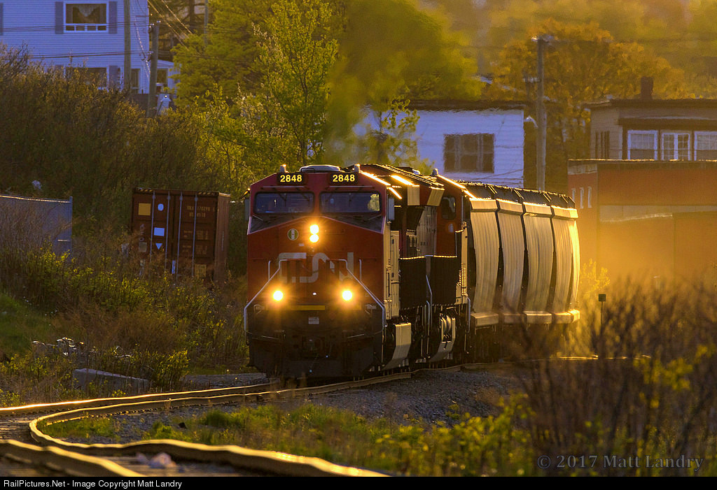 Good For 50mph....or not! As the sun rises over Saint John, New Brunswick, CN 2848 heads onto the Courtnay Bay spur, where it will set off it's loaded potash train. Conditions of the track towards me seems less than adequate, but it's in good enough shape to run 18,000 ton trains along it, although at 5mph.