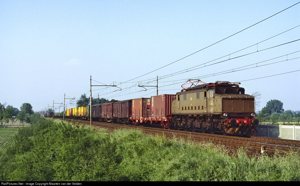 | FS E.626.141 with a freight train on the line from Padova to Bologna. These sturdy pre-war locomotives formed for many years the backbone for freihght transport on Italian rails. |