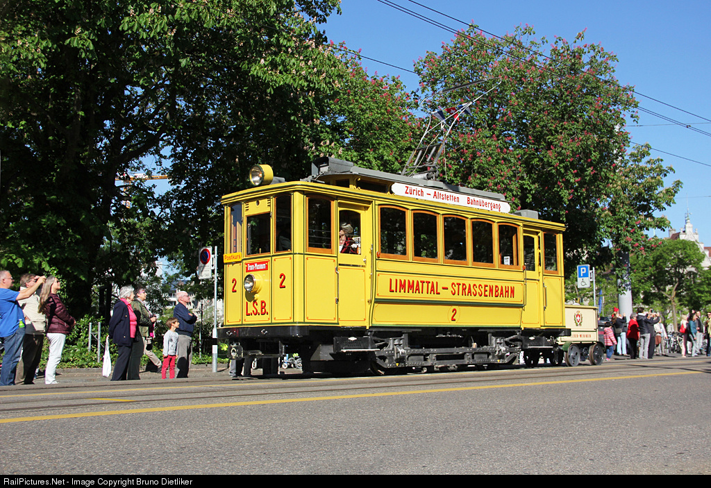 | Special oldtimer parade (50th anniversary Association 'Tram Museum Zürich' and 10th anniversary of the museum): Yellow oldtimer of the 'Limmattal Strassenbahn' (built 1900) with a special post trailer in the best morning sun |