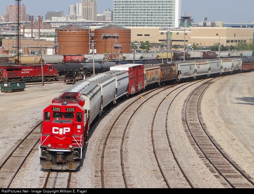 CP 2250 pulls a cut of cars out of CP's Muskego Yard located in the lower valley of Milwaukee, WI.