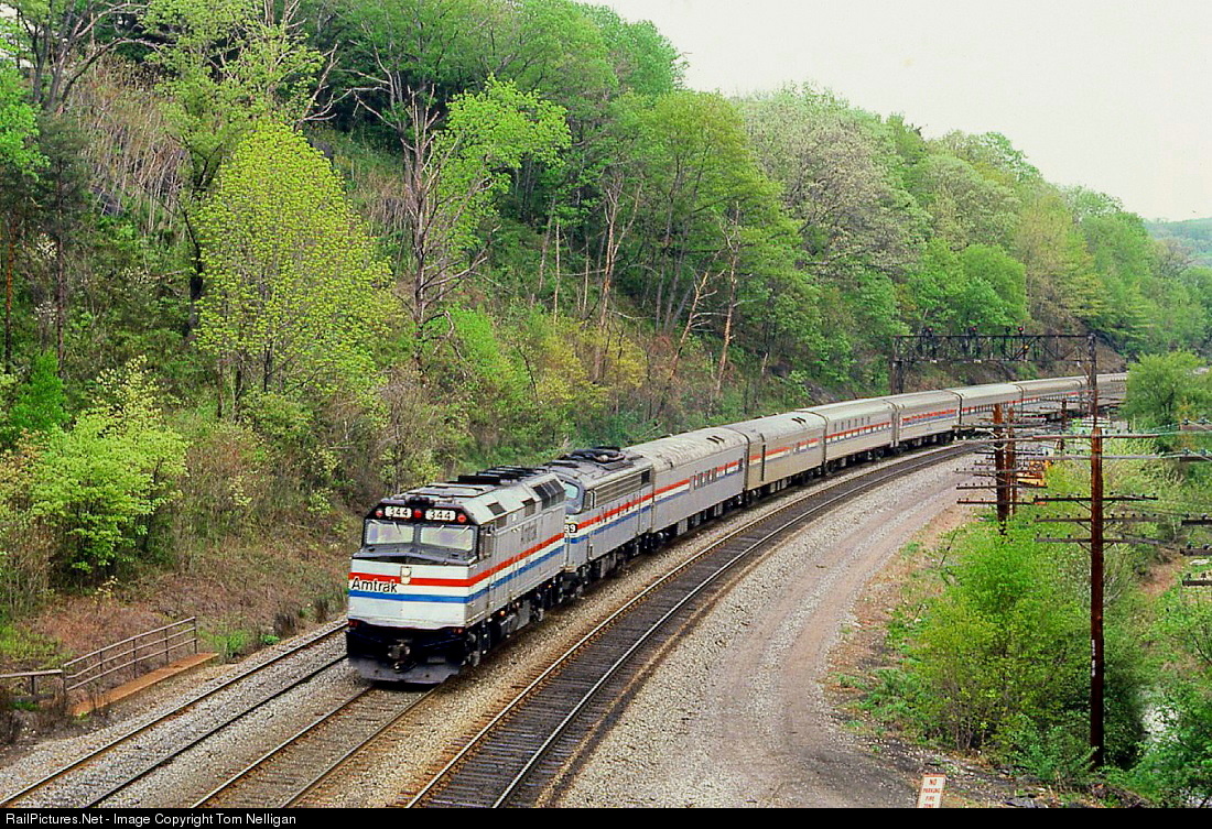 Spring is coming and the trees are leafing out in the Hudson Valley as Amtrak train 48, the eastbound Lake Shore Limited, glides through Cruegers, NY, behind an F40PH/FL9 pair. The F40 will come off at Croton-Harmon and the FL9 will run solo into Grand Central Terminal with the Heritage Fleet consist.
