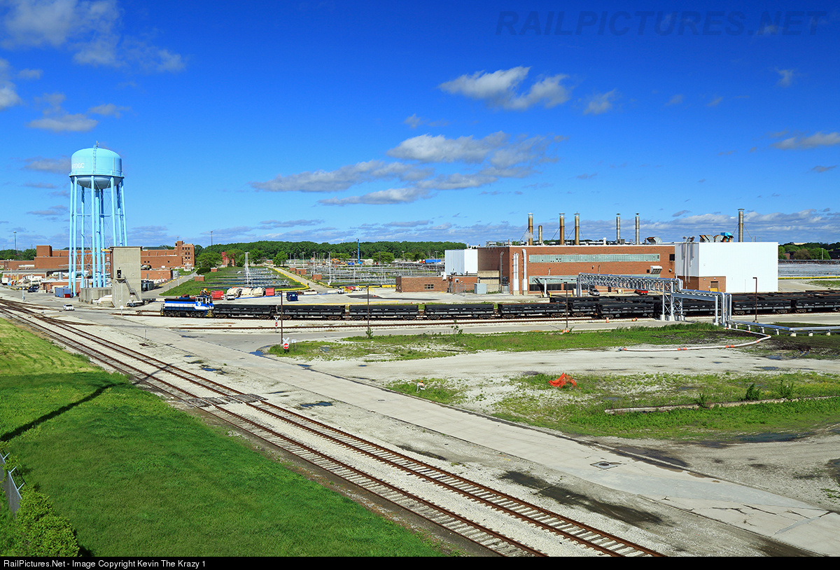 The Metropolitan Water Reclamation District of Greater Chicago shoves a cut of empties into a loadout track. Once spotted, they will grab another track of loads and make another run out on the main line.