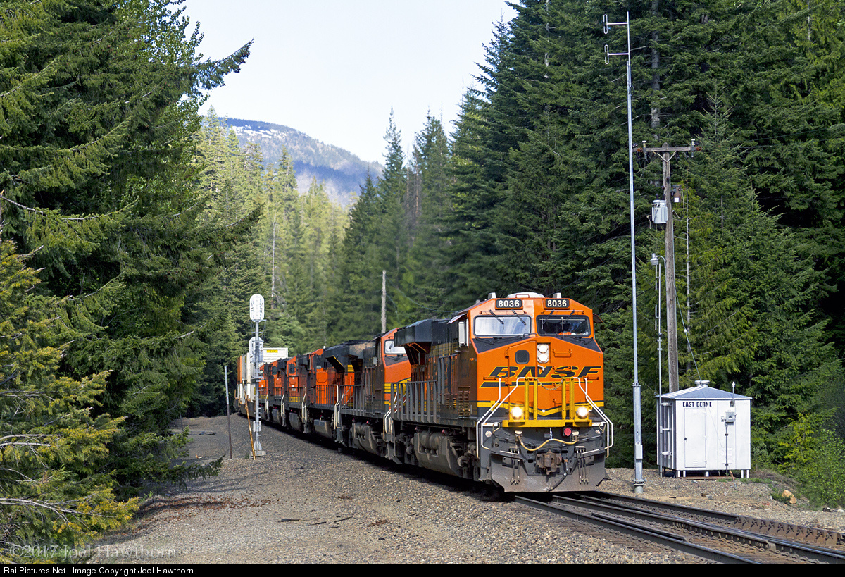 RailPictures.Net Photo: BNSF 8036 BNSF Railway GE ES44C4 at Berne, Washington by Joel Hawthorn