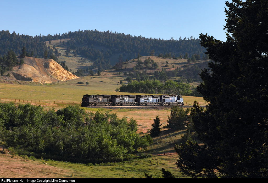 Drifting downgrade into Austin, Montana, on the morning of June 29, 2016, is a Montana Rail Link helper set heading back to Helena to help another train up Mullan Pass. Note the large cut above the lead locomotive—it is the location of Iron Ridge Tunnel that was bypassed using “Iron Ridge Cut.” With recent double-tracking widening the cut, a glimpse of the concrete portal of the abandoned tunnel can now be seen from below at Austin.