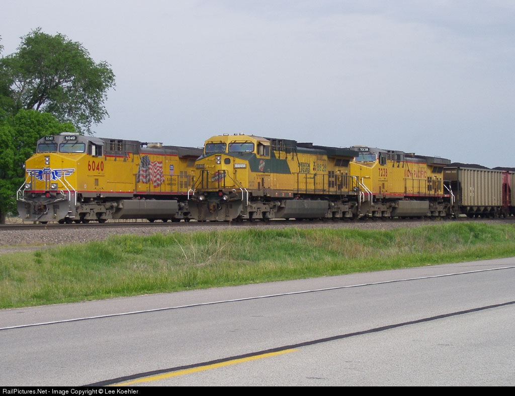 The past and present meet, as brand new AC4400CW-CTE UP 6040 and CNW 8828, one of the last 3 remaining AC4400CW's with CNW marks, both await a crew change at Mercer, Nebraska.