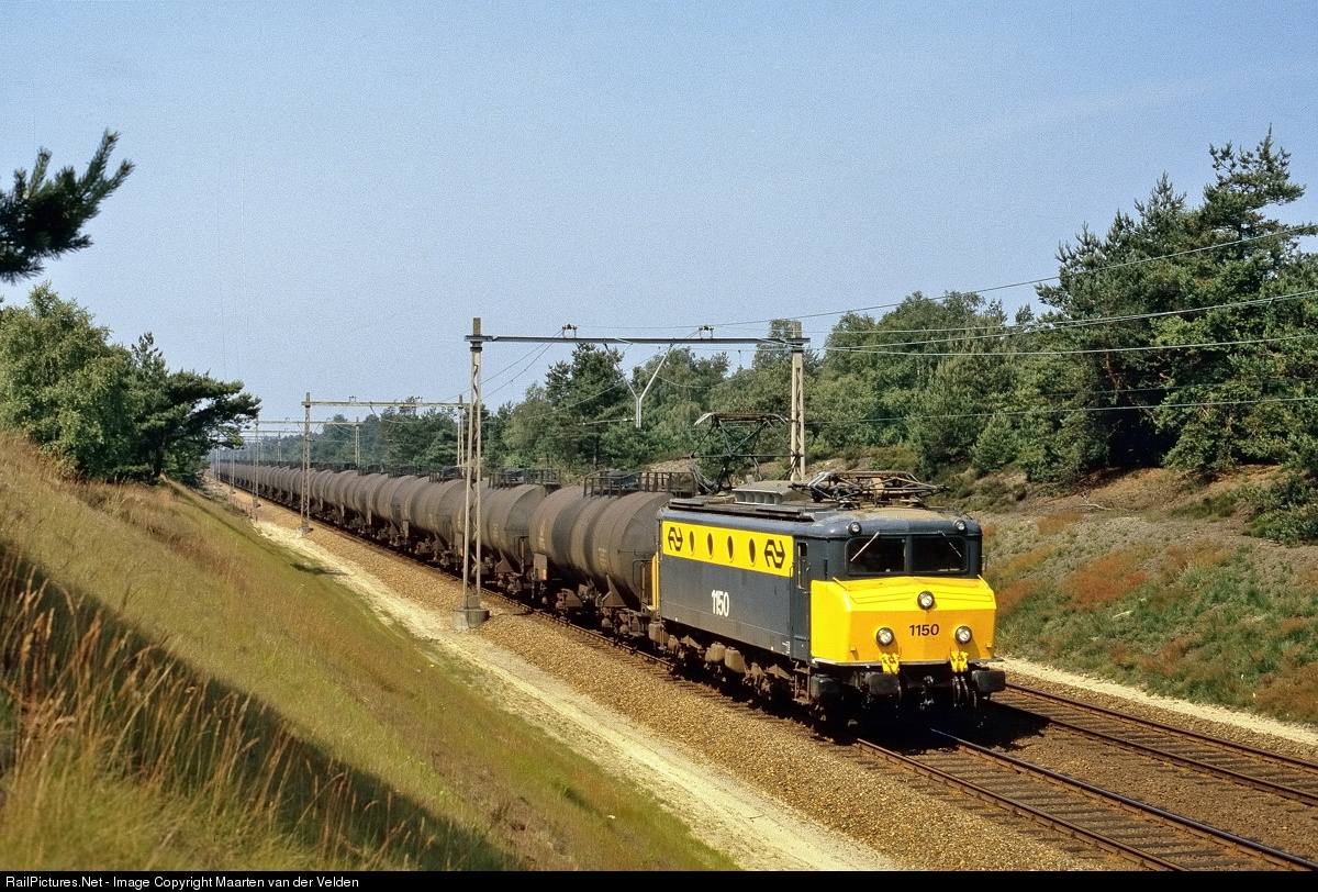 NS 1150 with an empty oiltrain from Pernis to Schoonebeek. With these trains crude oil was transportated from the oilfields of Schoonebeek to the refineries at Pernis near Rotterdam.