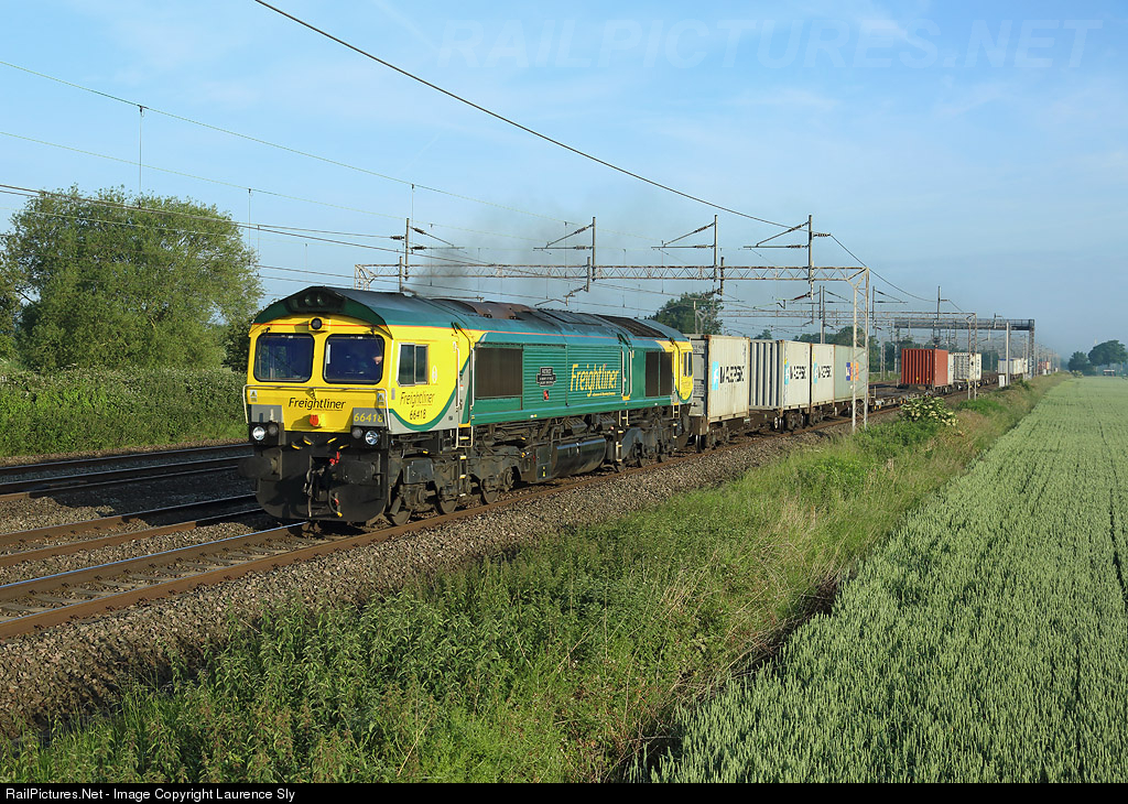 66418 approaches Rugeley whilst working 4L41, 0604 Crewe Basford Hall-Felixstowe North FLT