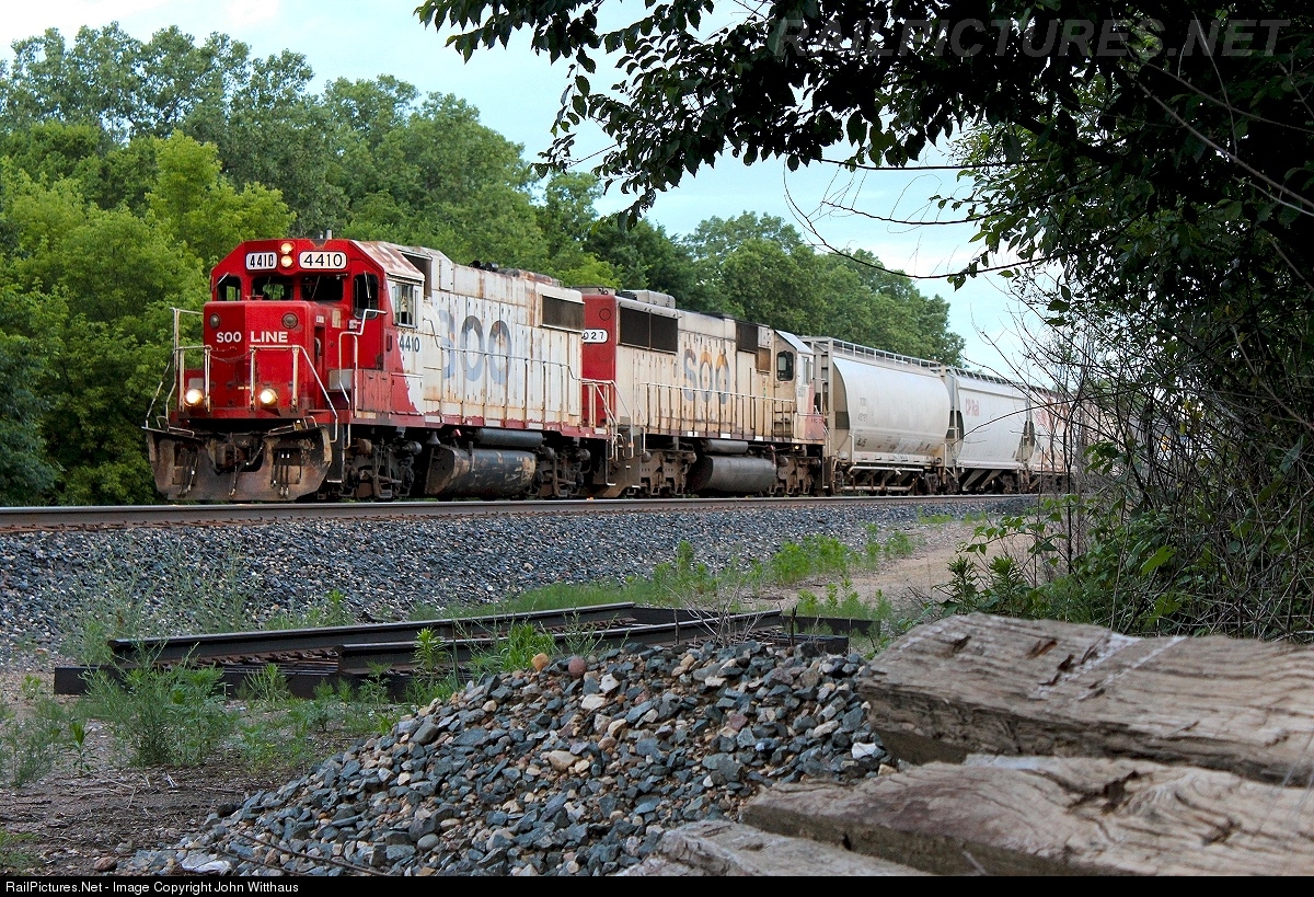 Get 'Em While You Can!: With CP beginning to rebuild and repaint many of the older units again, the original SOO units may disappear quickly. H20 has been running with a matched pair of red and white units the last few trips, something that may not happen again. Here the crew waits for their signal at E. Hastings after making their pick up, and will head East to La Crosse. Taken while off duty, wearing full PPE.