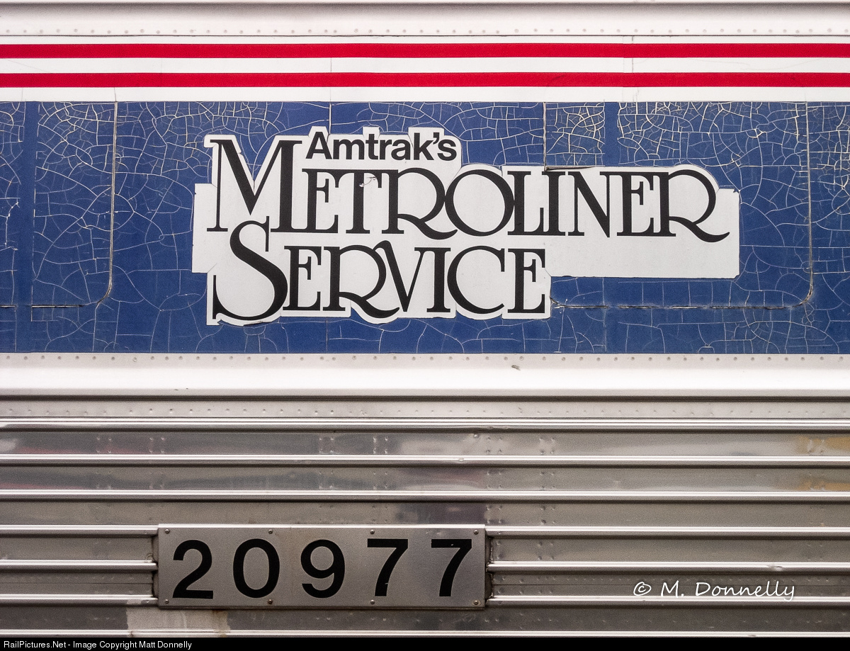 Metroliner ...a once well known and popular brand that was replaced as the premiere train on the Northeast Corridor by Acela. This car was awaiting overhaul at the Bear shops, and of interesting note is the Metroliner logo is from the Phase III era. A more modern version was usually applied to Phase IV cars that featured the arrow logo. Sadly I don't think I ever took a closeup of the more modern version.