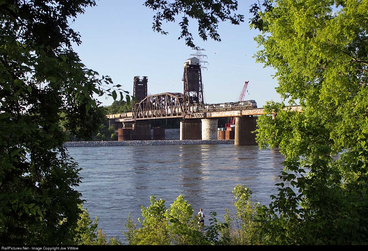 Completing its southbound run over the CNO&TP NS 7555 leads its train over the Tennessee River in Chattanooga.