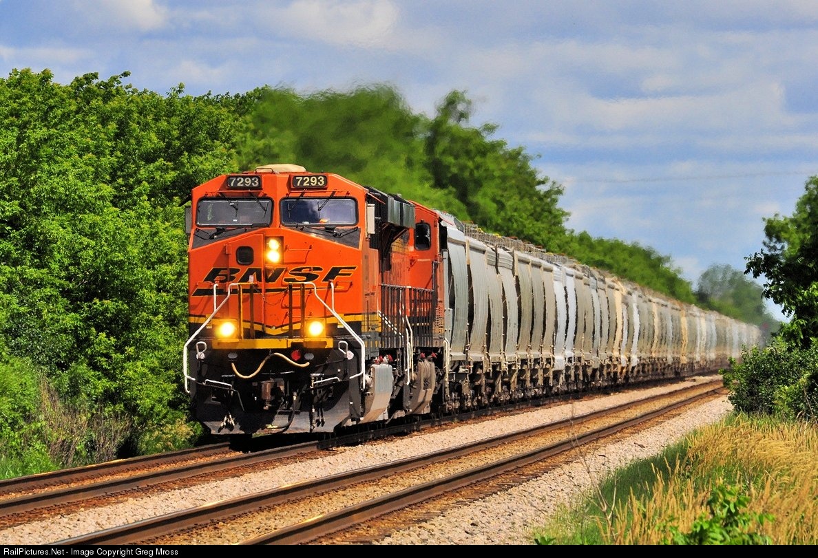 BNSF 7293 brings southbound hoppers thru Franksville, WI on CP's C&M Subdivision on June 25th of 2017. You never know what railroad will be represented on this line.