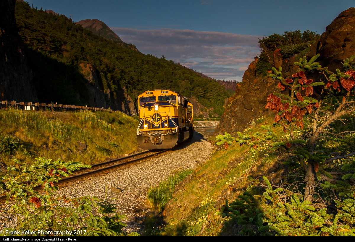 | The summer has not gotten off to a good start here in the Last Frontier. Plenty of dark dreary skies and rain, lots of rain. So when you get a sunny afternoon you make the most of the opportunity. It is roughly 2145 on a Saturday evening and returning Coastal Classic heads into some fantastic late evening light. While the trains may be few scenes like this make it worthwhile, at least for me. |