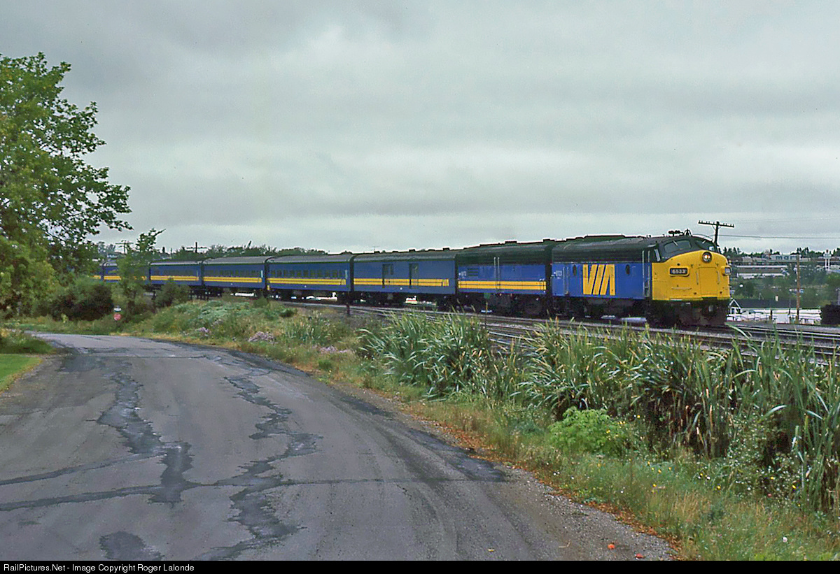 Eastbound VIA Rail train 14 The Ocean with GMD FP9A 6533 (ex-CN) and MLW FPB-4 6871 (ex-CN unit).