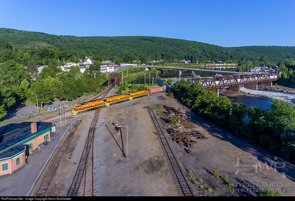 RailPictures.Net Photo: NECR 3405 3475 3474 New England Central SD40M-2 at Bellows Falls, Vermont by Kevin Burkholder