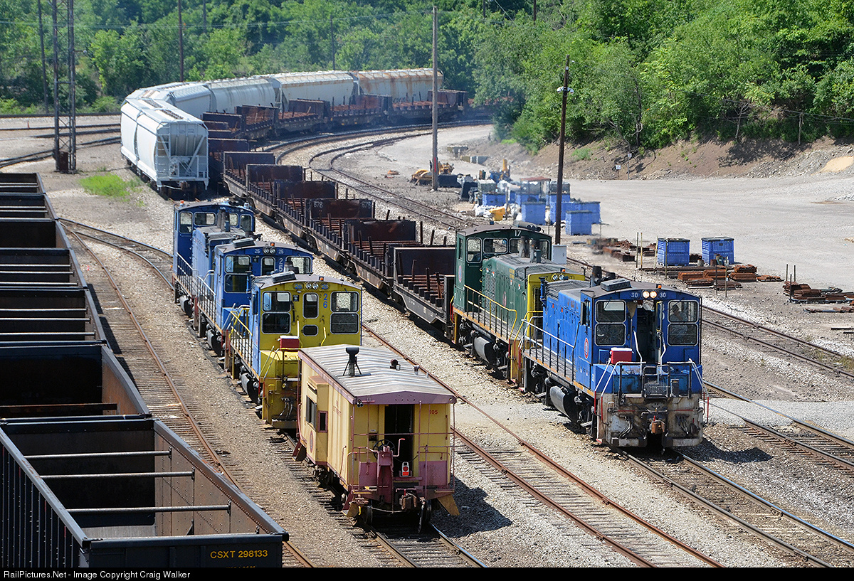A Union Railroad empty steel slab train passes through the railroad's Duquesne Yard in, of all places, Duquesne, Pennsylvania. On this June 25, 2017, morning the train is powered by URR MP15DCs 30 and 17. (For those keeping score at home, the three MP15DCs sitting in the yard are numbers 26, 25 and 10.) EMD MP15DCs are, for the most part, the locomotive of choice these days on this Class III switching railroad, owned by United States Steel (USS Corporation), and built to service the steel mills in and around Pittsburgh.