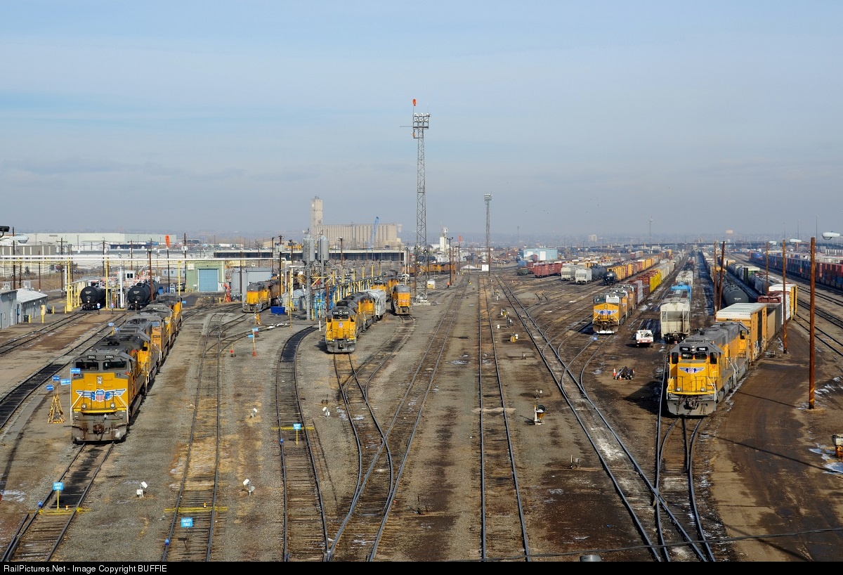 Here we see a wide angle view of the UP's North Yard in Denver. There is a nice variety of power, including UP 8866 (SD70AH), UP 1359 (former Denver & Rio Grande Western GP40-2), UP 6412 (former Southern Pacific AC44CW) and UP 700 (former Missouri Pacific GP38-2).