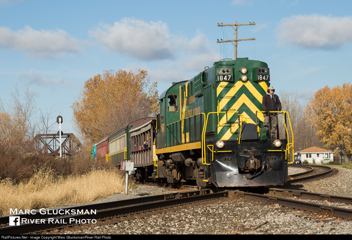 Forever diamonds - The Buffalo Cattaraugus & Jamestown Scenic Railway and the Buffalo Southern Railroad operated a rare mileage special on Saturday November 12, 2016 from Hamburg, New York to Tifft Yard in Buffalo, New York and back south to Eden, New York (the trip was repeated on Sunday, November 13, 2016). Buffalo Southern's RS-18 1847 (RS-18 MLW 1958, ex-CPRS 1847, exx-Q&G 1846) leads in Blasdell, New York, where is crosses main line Norfolk Southern (former Nickel Plate) freight trackage at grade at "GB".