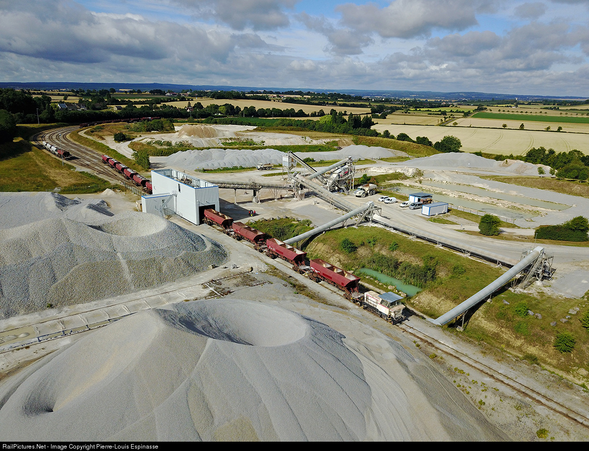 In the heart of Normandie, Ballast hoppers are being loaded at "Chailloué" quarry.