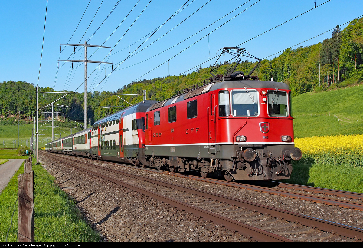| Another example with train # 28546: Re 4/4 # 11148 leads the train for the exchange of railroad cars towards Bern, always running from Monday to Friday. Usually complete new assembled day by day. The picture in the evening sun was taken between Wynigen and Burgdorf. |
