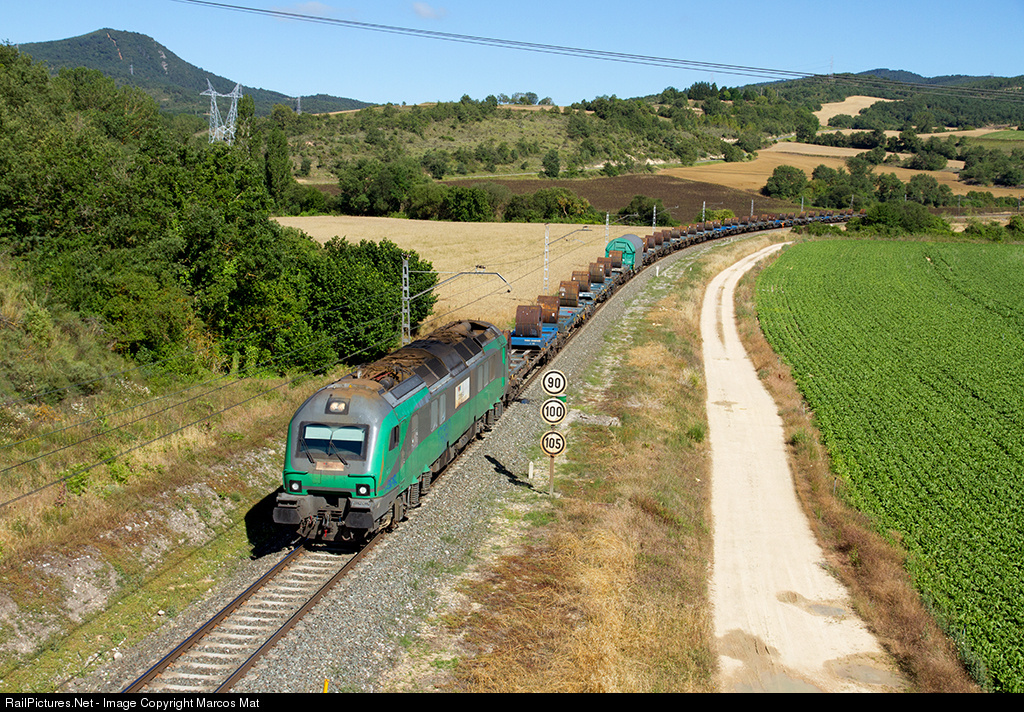 I recently saw photos of some colleagues in which appeared this dual locomotive working in diesel mode even though the line was electrified. This morning it has appeared in Pobes in diesel mode too, a strange circumstance whose reason I do not know. Locomotive 601.006 in charge of the steel freight Santurce-Aranda de Duero at Pobes.