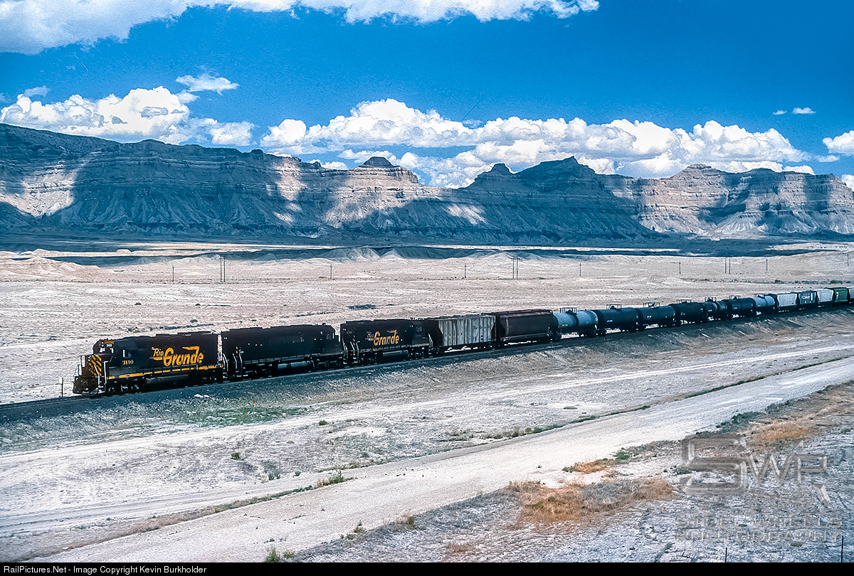 Though Southern Pacific had already officially taken over, an encore for Denver & Rio Grande Western power was had on June 22, 1994, as the Denver, CO to Roseville, CA train 1DVROM-21 is seen approaching Desert, Utah on the former DRGW 5th Subdivision with three models of DRGW power - GP40-2 3110, SD45 5339 and GP40 3088.