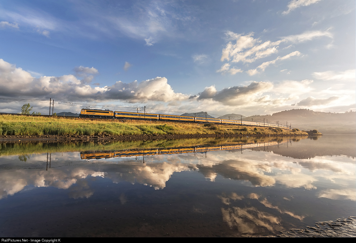 Regiojet Kosice-Praha Intercity goes round the 'S' over Liptovská sea.