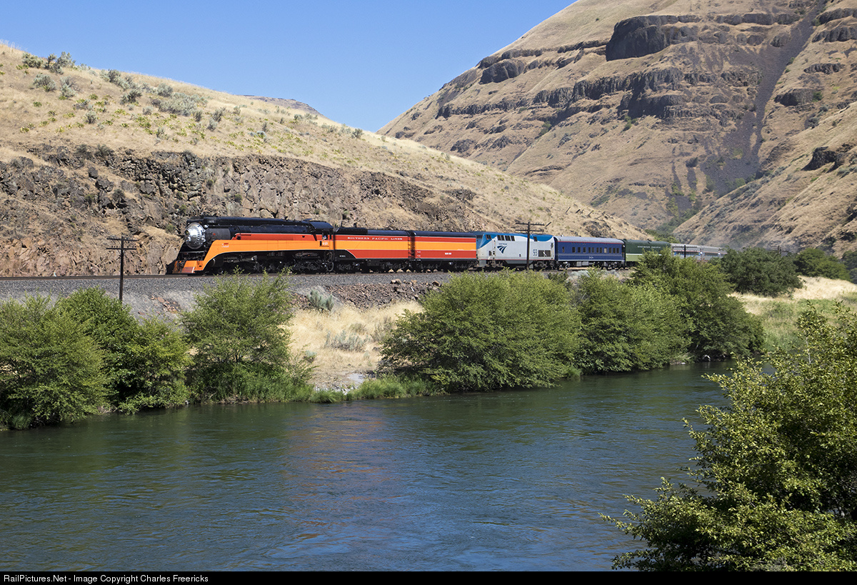 | Oregon Rail Heritage's Daylight Excursion to Bend, OR (operating as Amtrak train 925) runs along the stunning Deschutes River in central Oregon on the Oregon Trail Sub. |