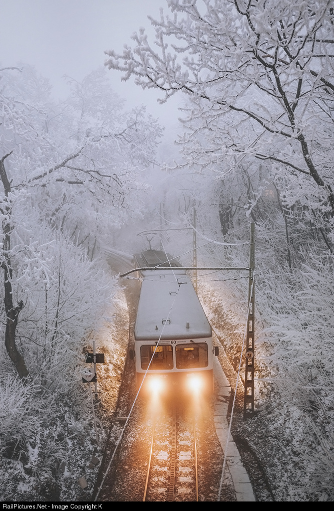Cogwheel tram making an empty turn the day before Christmas day. It's passing Széchenyi-hill's entrance just to terminate by the platform, wait 5 minutes then head back for Városmajor. It was shot from the same bridge, than a photo I featured earlier: ID 620818