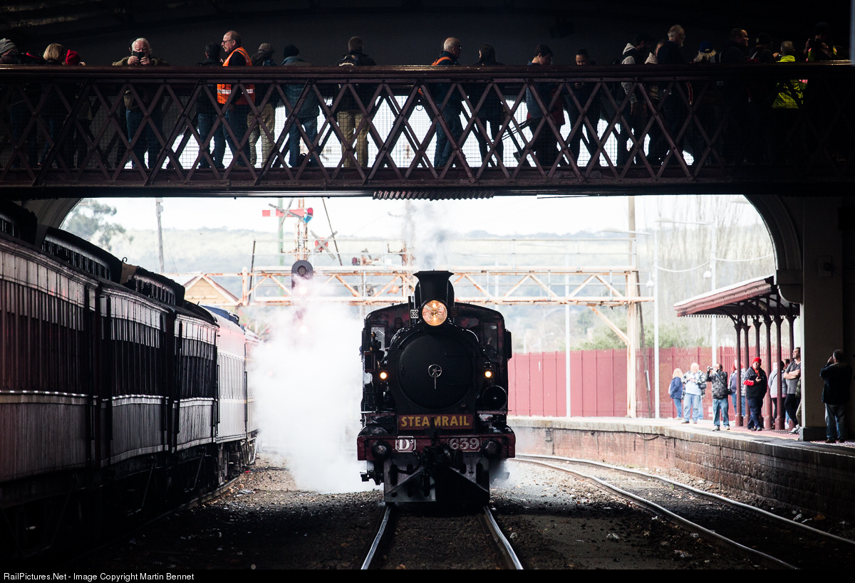 | D3 639 and A2 986 (coupled, not visible) wait in the centre road at Ballarat before heading to Ballarat East for servicing, during Steamrail's 'Steam Spectacular' tour. Later that evening the train would split in two for a dramatic parallel run up the Geelong line, watch the video here: https://www.youtube.com/watch?v=11GO-1jAjTs |