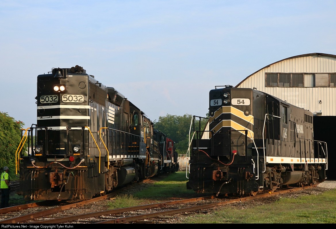 Ohi-Rail 5032 and 54 sit outside the shops. The two ex-Norfolk Southern GP38-2's were being started and checked over for work around Minerva. Ohi-Rail has a very neat selection of motive power, which includes low and high hood geeps, old Alco switchers and even an old steam engine, which isn't in the best shape. They also own 2 Canadian F40PH's.