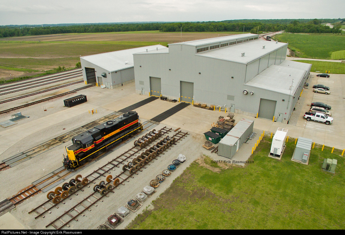 IAIS GP38-2 718 sits on the west side of the diesel shop at South Amana.