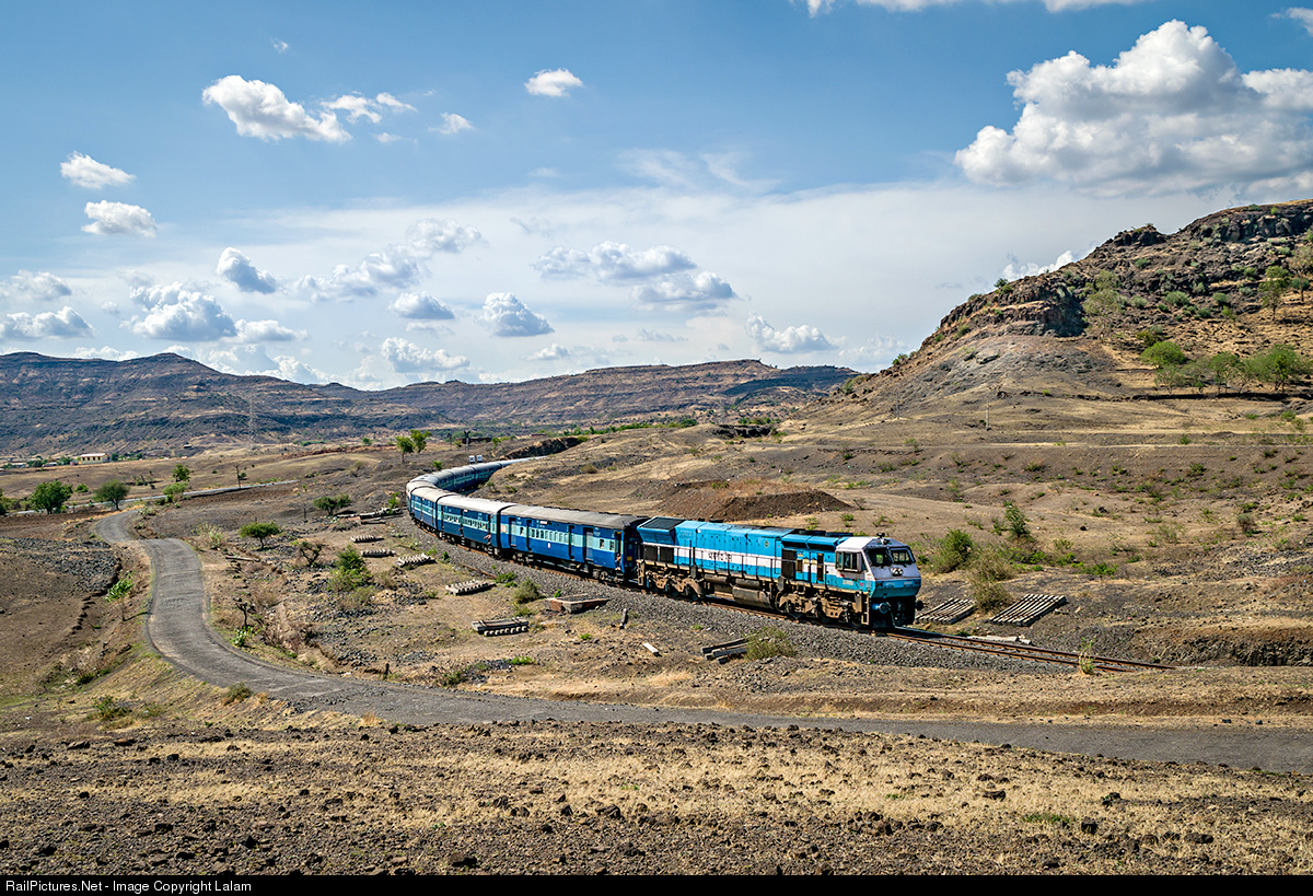 | 4000 H.P., Electro Motive Diesel, passenger version, WDP-4 type locomotive hauling Mumbai to Kolhapur Koyna express through Daudaj. |