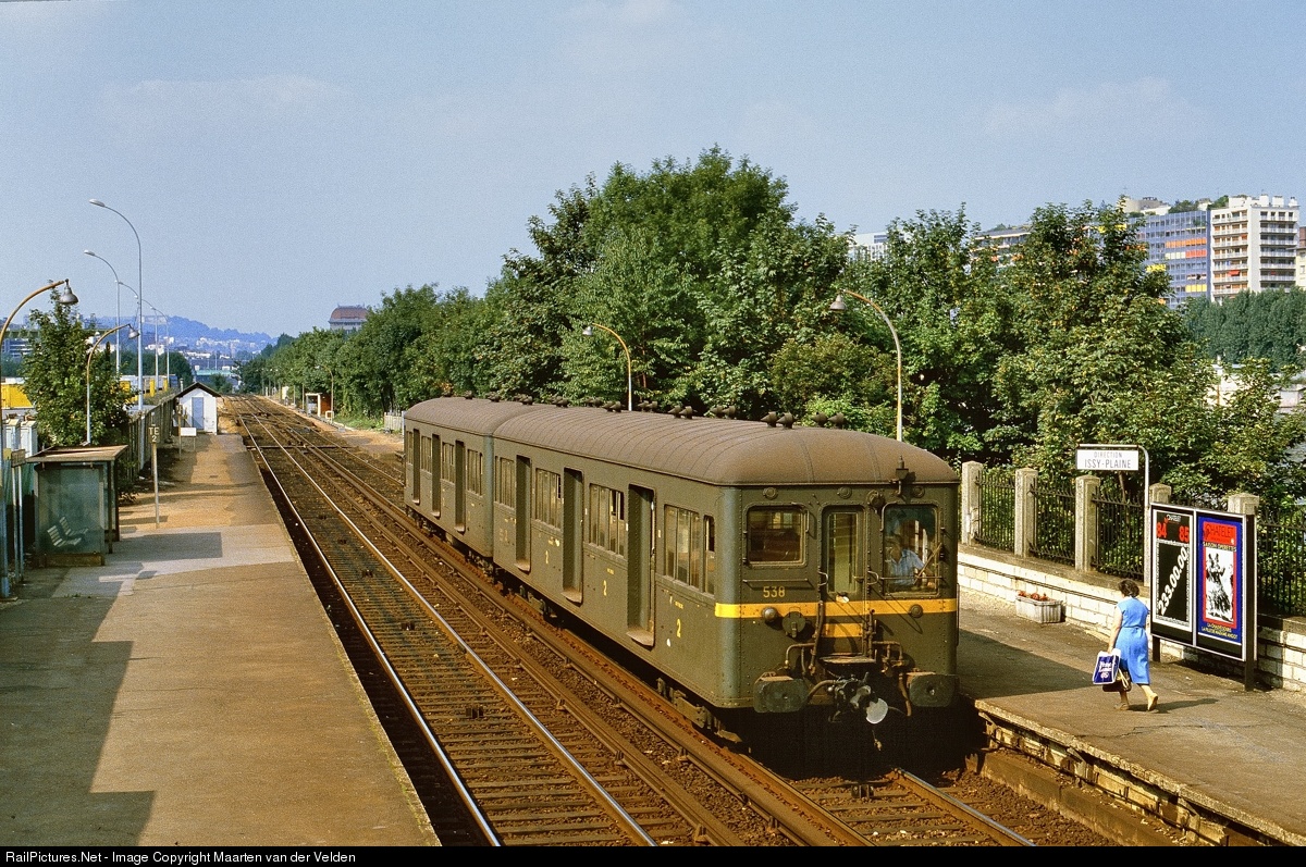 | SNCF EMU Z 1538 / ZR 11538 during an intermediate stop at Pont-de-Sèvres. The train was running as 2604 from Issy-Plaine to Puteaux, both suburbs of Paris. These EMU's were equiped for riding with 750 V DC, supplied by a third rail. |
