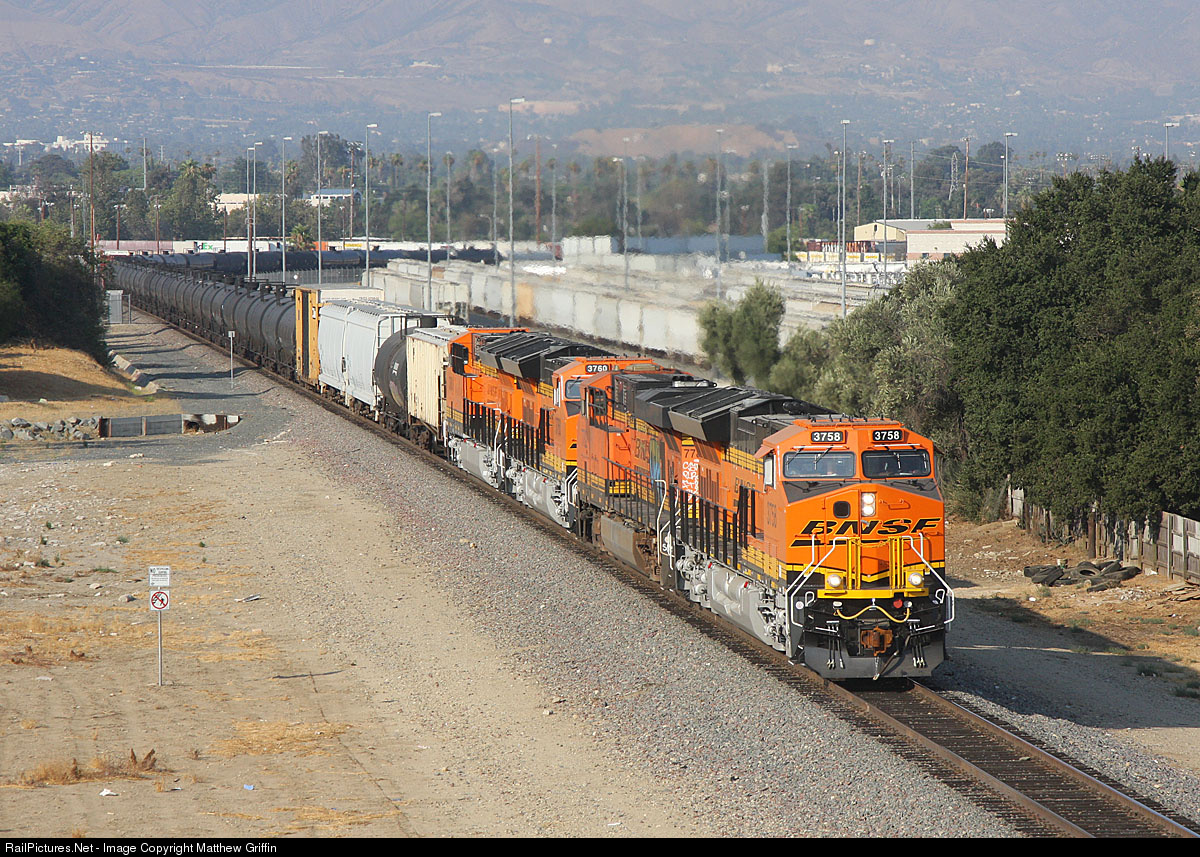 RailPictures.Net Photo: BNSF 3758 BNSF Railway GE ET44C4 at Rialto, California by Matthew Griffin