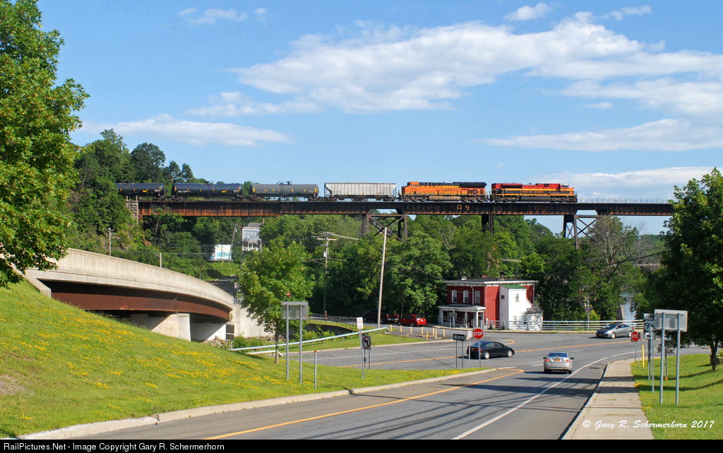 A colorful pair heads a loaded ethanol over the Catskill Creek on a beautiful afternoon.