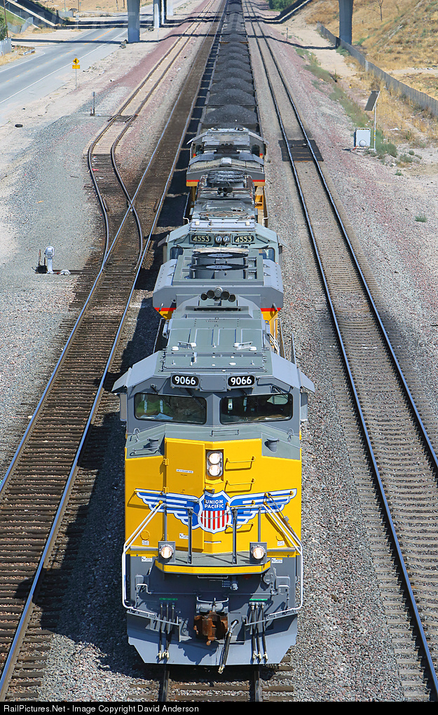 Brand New T4C UP 9066 leads this Coal drag in a 3X2 fashion with 92lds, 13,156tns, 5338ft. This is her 2nd trip after leading the MNPWC-13 Westward yesterday! Sure are pretty when they're new!