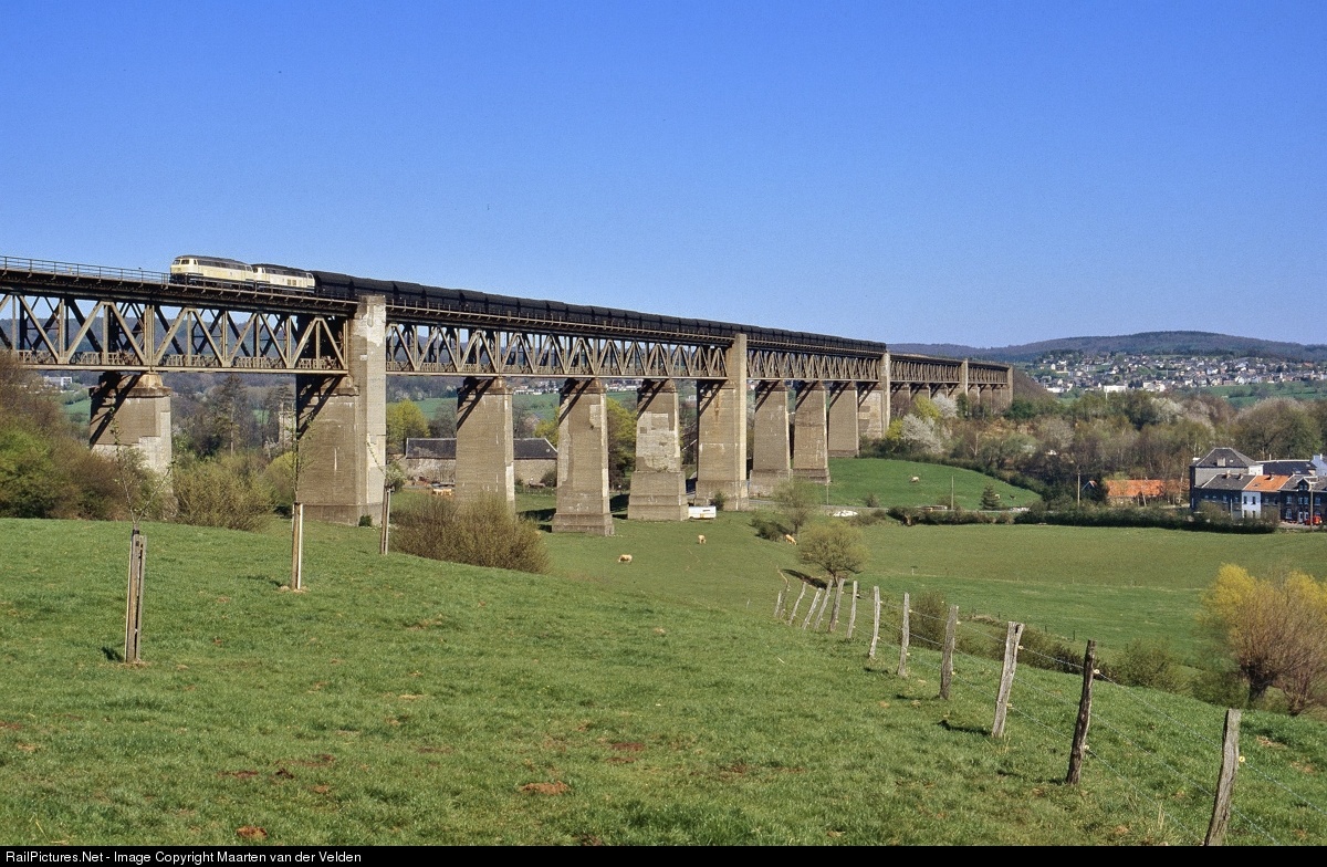 DB 215 028-2 and 215 118-1 with a coal train on the gigantic Viaduc de Moresnet. The viaduct is build over the valley of the Geul and lies about only three miles south of the Dutch border.