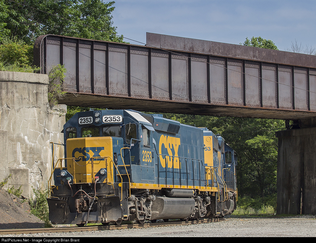Ex-B&O GP40, now relegated to a road slug, is on the east leg of the wye on CSX's S&C Sub. The bridge above is the former Western Maryland connection between their mainline and the trackage rights through Somerset, PA, allowing the WM to reach mines at Gray.
