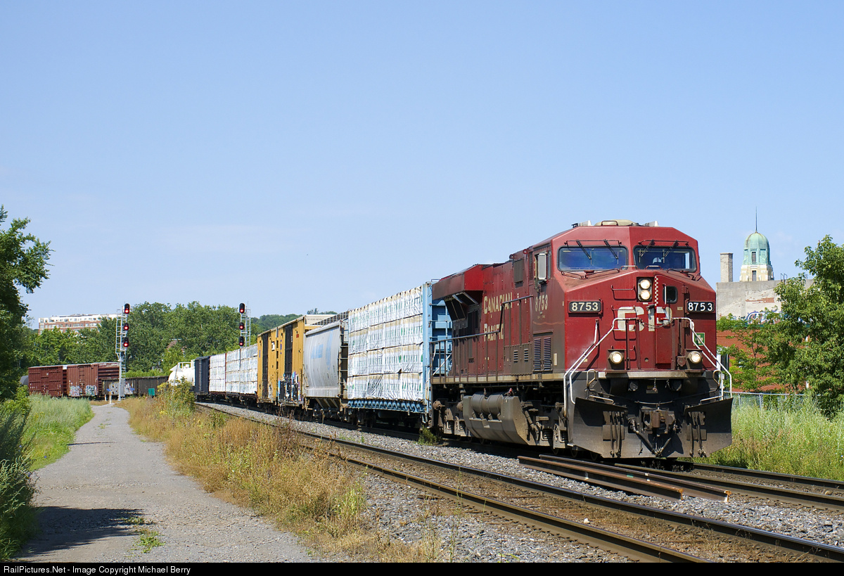 | One improvised numberboard. CP 8753 has one improvised numberboard as it leads CN 528 through the St-Henri neighbourhood with a short train. This NS run-through train normally features NS power, but CP power is seen on this train now and again. |