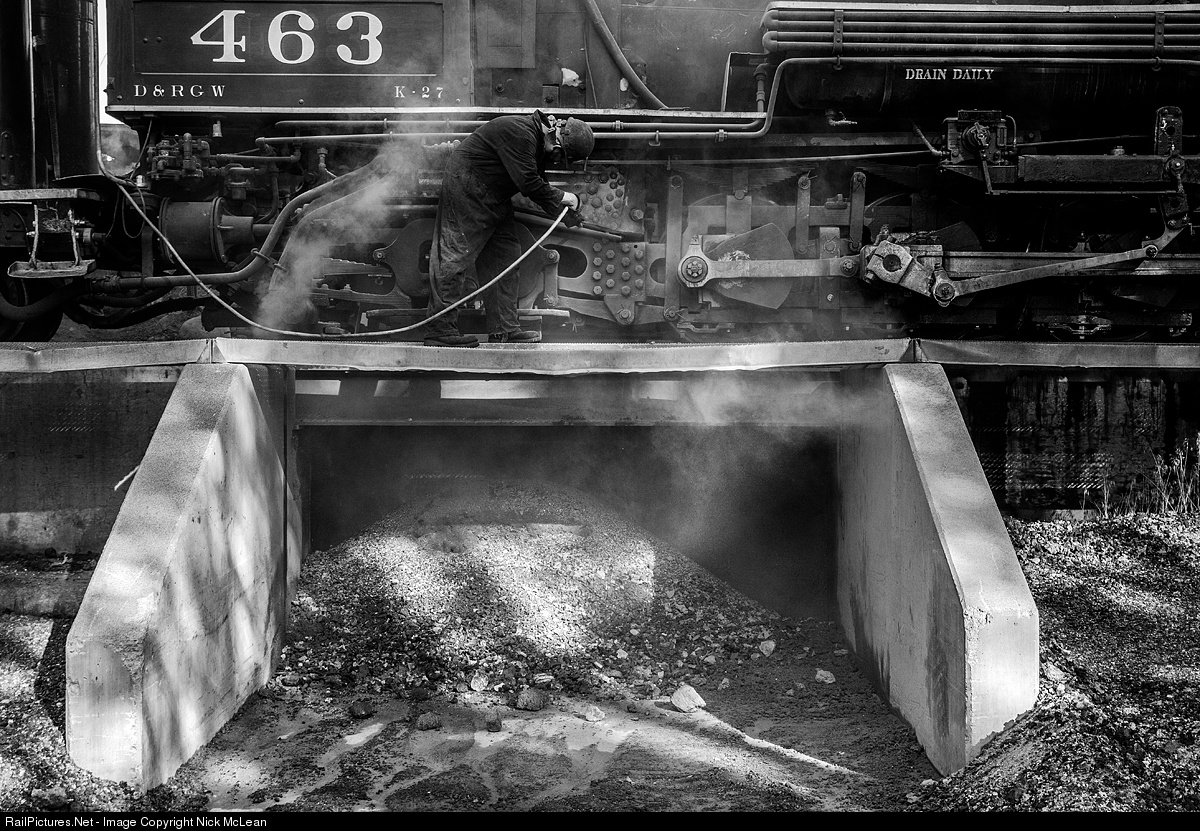 In a scene that has played out thousands of times before in Chama, a crewman cleans the ashpan prior to a day of work.