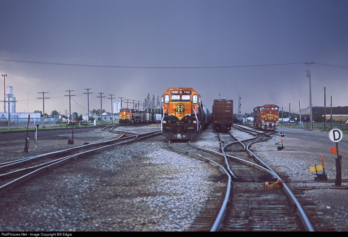 A storm is brewing over the BNSF at Sterling as a coal train arrives on the mainline. BNSF 7329 catches a bit of brighter light, but it won't last for long as the thunder storm rolls through the community.
