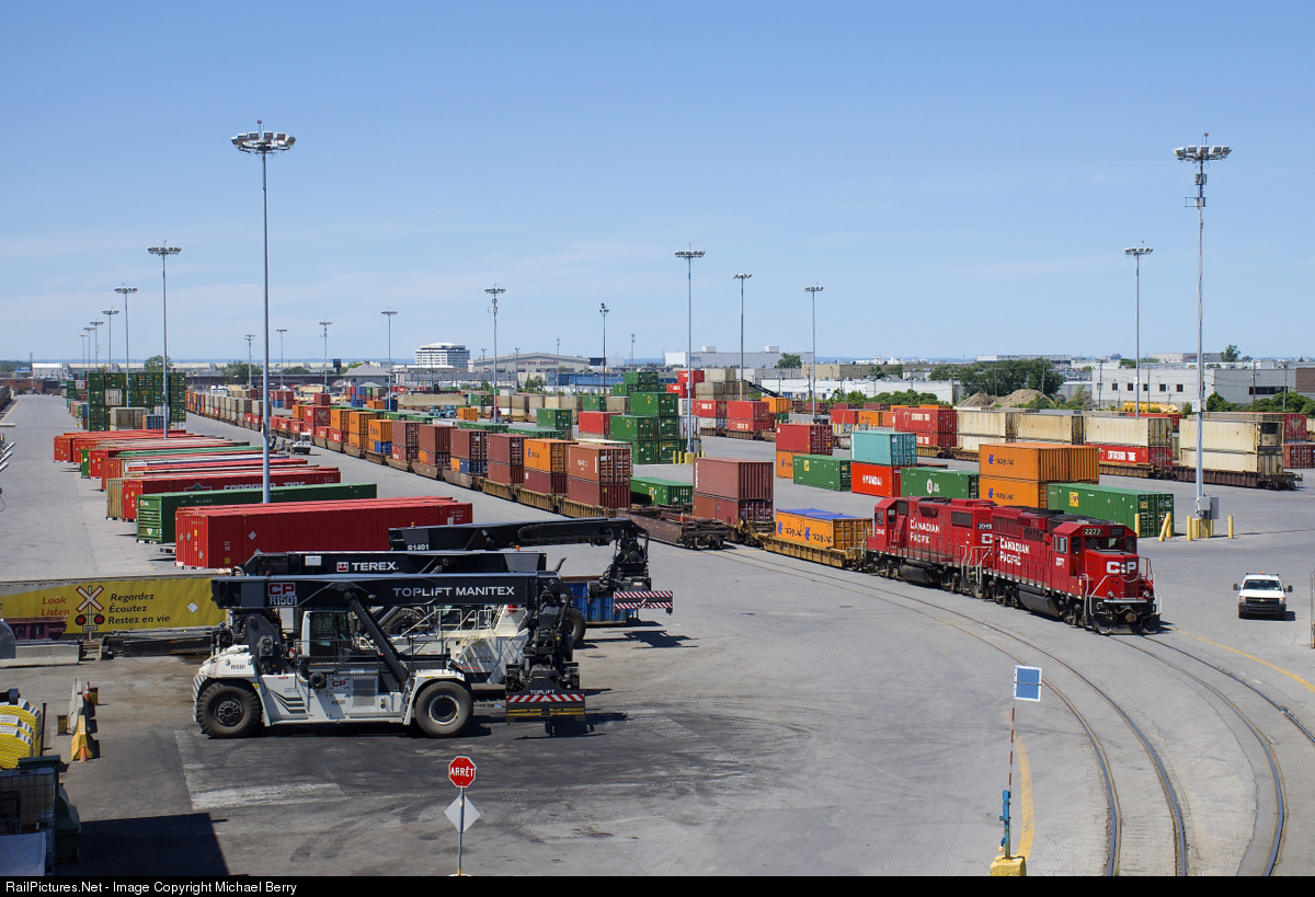 CP 2277 & CP 3048 prepare to leave Lachine IMS yard with an intermodal transfer destined for nearby St-Luc Yard.