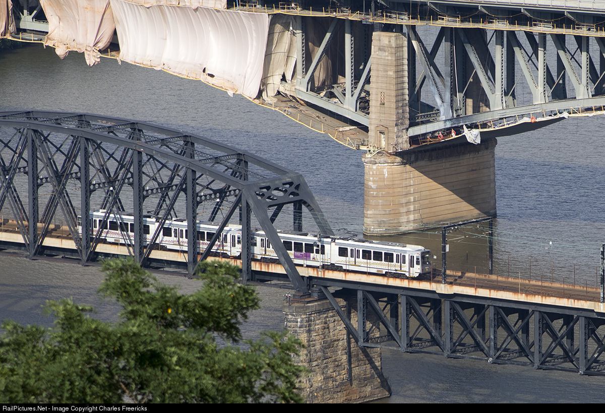 Telephoto view of the PAT T train on the Panhandle Bridge, taken from the Monongahela Incline.