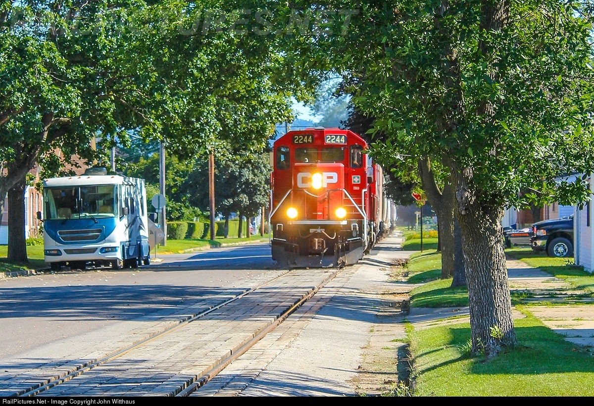 Wall Street: Street running operations are always interesting, even more so when they're in a residential area, and not industrial. Winona, MN is one of the more overlooked operations in the country. CP runs 7 blocks down Wall St to access UP's Winona Sub and service Bay State Milling with cars from the BNSF. Taken while off duty, wearing full PPE.