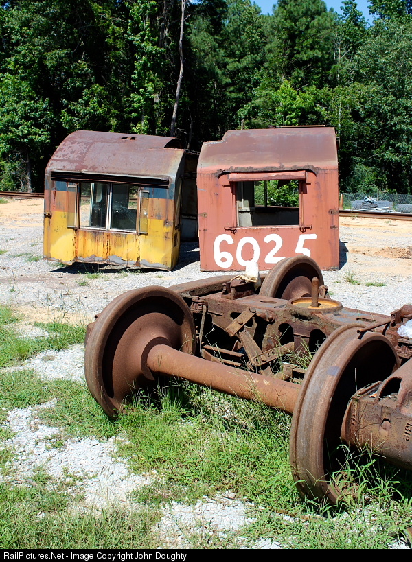 | The GP-9 cab shells of GOMX 6025 and a Chessie sit in the storage area at PowerRail Locomotive Services. The 6025 was once owned by the Hampton & Branchville, which applied the orange color paint the the "unique" number style lettering. The 6025 was originally built for the Chesapeake and Ohio. Photo taken with permission. |