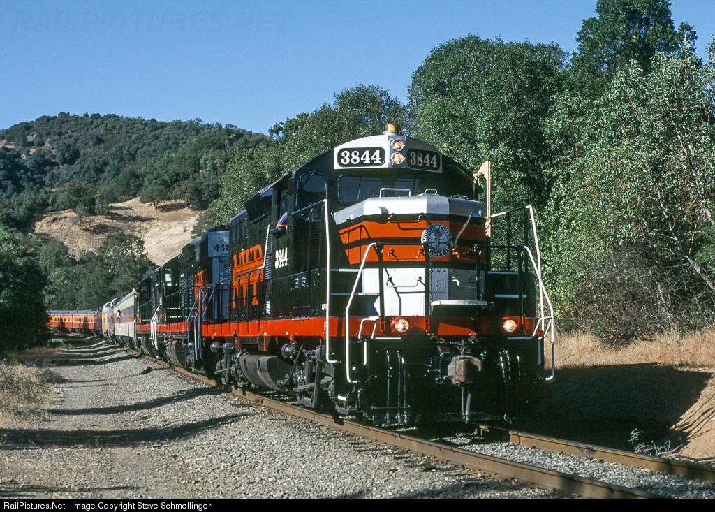 RailPictures.Net Photo: NWP 3844 Northwestern Pacific Railroad EMD GP9 at Ridge Hill, California by Steve Schmollinger