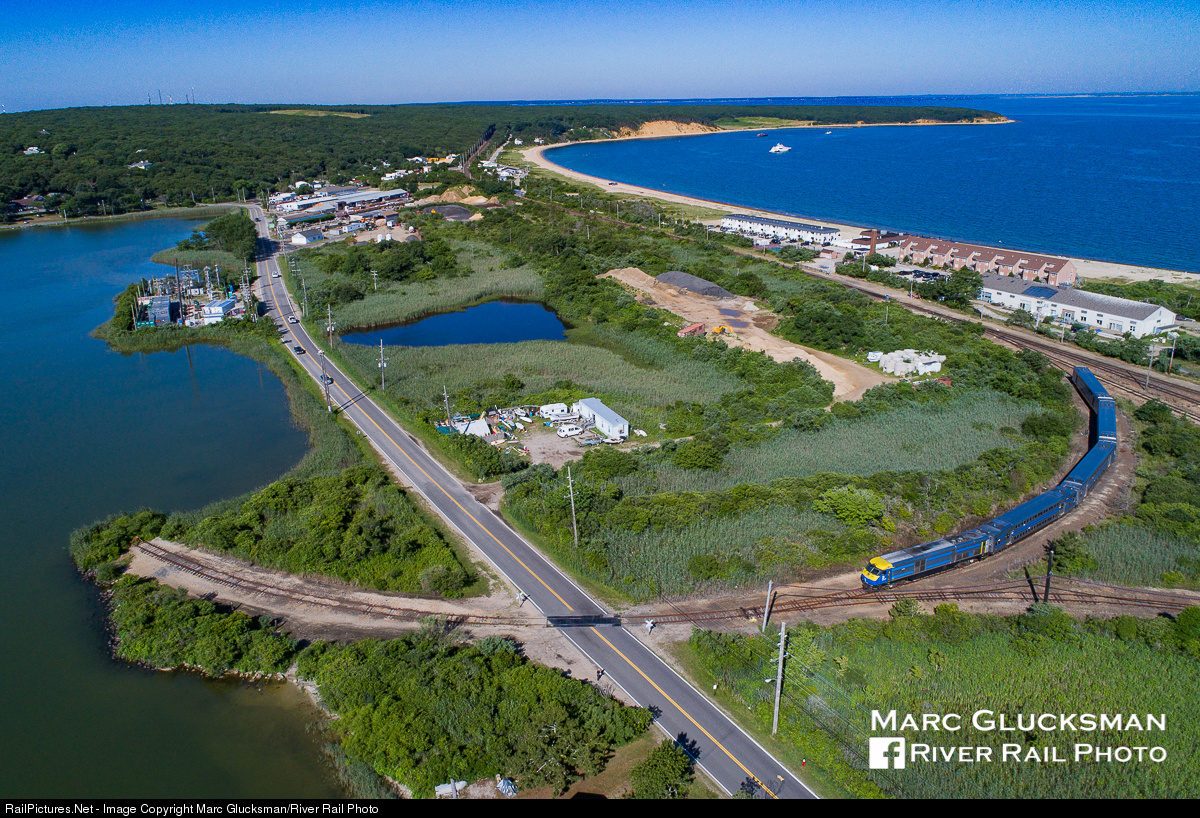 No question about the wye – The protect set for weekend service sits on the Montauk Wye on the morning of 7/16/2017, DM30AC 500 facing east. The wye, which is still in service, sits at the railroad west end of the Montauk Station/Yard area. It crosses Industrial Road towards Fort Pond to the south with one of the few unprotected crossings on the LIRR.