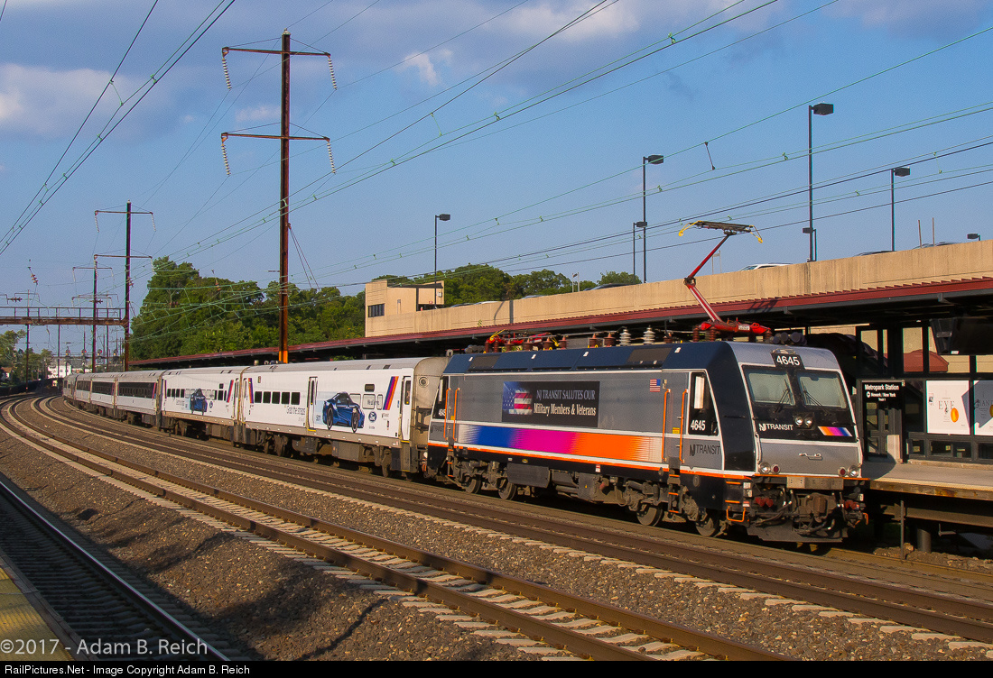 Brought to You, in Part, by Ford: Noteworthy graphics dot parts of the consist of Northeast Corridor Line Train 3898 on Wednesday August 9, 2017. In addition to the NJ Transit Salute to Military Members and Veterans graphic on ALP-46A #4645, three Comet coaches feature advertisements for the Ford Motor Company. Although ads are often posted on coaches, thus far, it has been rare to see cars fully wrapped in ads on NJ Transit commuter trains.