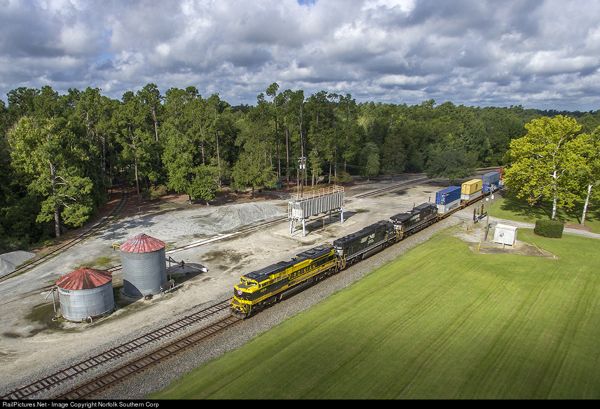 The Virginian heritage unit leads train 238 through Brosnan Forest, near Dorchester, SC. This is a daily intermodal train operating between Atlanta, GA, and Charleston, SC. Photo by Casey Thomason. For more information about Norfolk Southern, visit www.nscorp.com